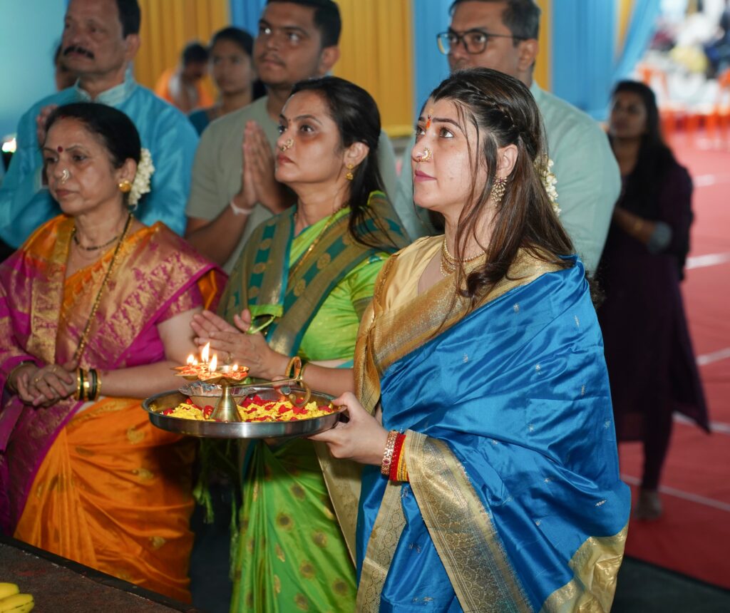 लोअर परळ येथे शेलार मामा फाउंडेशनतर्फे आयोजित करण्यात आलेल्या ‘कुलस्वामिनी भैरी भवानी’ चैत्र नवरात्रोत्सवाला यंदा मोठ्या भक्तिभावाने आणि उत्साहात सुरुवात झाली. या नवरात्रोत्सवात आयोजित करण्यात आलेल्या नवचंडी याग-यज्ञ सोहळ्याला विशेष महत्त्व असून या पवित्र सोहळ्यात अभिनेत्री तेजस्विनी पंडित यांनी उपस्थित राहून देवीची मनोभावे पूजा केली. पारंपरिक विधी, मंत्रोच्चार आणि धार्मिक वातावरणात पार पडलेल्या या यज्ञाने संपूर्ण परिसर भक्तिमय झाला होता. या नवरात्रोत्सवाला अनेक भाविकांनी उपस्थित राहून देवीचे दर्शन घेतले आणि नवचंडी याग-यज्ञात सहभाग घेतला. श्रद्धा, भक्ती आणि आध्यात्मिक ऊर्जा यांचा सुंदर संगम या सोहळ्यात अनुभवायला मिळाला. “नवरात्रोत्सव हा आपल्या संस्कृतीचा आणि श्रद्धेचा महत्त्वाचा भाग आहे. अशा पवित्र सोहळ्यात सहभागी होण्याची संधी मिळणे हे माझ्यासाठी अत्यंत आनंददायी आणि समाधानकारक आहे, असे तेजस्विनी ह्यावेळी म्हणाली.. Post navigation ‘महाराष्ट्र माझा, मुंबई कुणाची’ विचार करायला भाग पाडणारी नाट्यकृती चर्चेत! ‘अप्सरा’बनली ‘मंजुळा’!