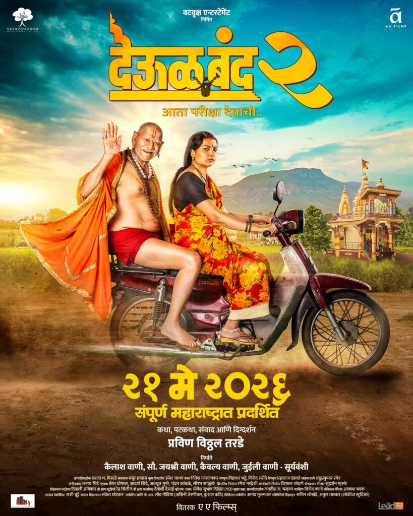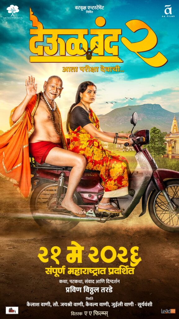 बहुप्रतिक्षित “देऊळ बंद 2” च्या प्रदर्शनाची २१ मे २०२६ ही तारीख गेल्या आठवड्यात जाहीर करण्यात आली व त्यामुळे स्वामीभक्त आणि प्रेक्षकांमध्ये प्रचंड आनंदाचे वातावरण निर्माण झाले. आनंदाबरोबरच उत्सुकता वाढली असतानाच आज “देऊळ बंद 2” चे पहिले पोस्टर प्रदर्शित झाले आणि आनंदात अजूनच भर पडली. “देऊळ बंद” मध्ये ज्येष्ठ अभिनेते मोहन जोशी यांनी आपल्या सशक्त अभिनयाने आणि आवाजाने स्वामी समर्थ अक्षरशः प्रत्यक्षात आपल्या समोर उभे राहून आपल्याशी संवाद साधत आहेत असे प्रेक्षकांना वाटत होते. तेच सर्वांना “देऊळ बंद 2” मध्ये अनुभवायला मिळणार आहे, कारण या भागात सुद्धा मोहन जोशी हेच श्री स्वामी समर्थांच्या भूमिकेत पाहायला मिळणार आहेत तर महत्त्वपूर्ण भूमिकेत अभिनेत्री स्नेहल तरडे त्यांच्या सोबत असणार आहेत.वटवृक्ष एंटरटेनमेंट निर्मित “देऊळ बंद २ – आता परीक्षा देवाची” च्या पहिल्या पोस्टरमध्ये प्रसन्न मुद्रेने हात उंचावत स्वामी दुचाकीवर मागे बसले असून अभिनेत्री स्नेहल तरडे ती दुचाकी चालवत आहेत. स्वामी जरी प्रसन्न मुद्रेत असले तरी स्नेहल यांच्या चेहऱ्यावर राग आहे आणि डोळ्यातून अश्रू ओघळत आहेत, आता हा राग कशासाठी आणि दुःख कशाचे? यासाठी प्रेक्षकांना चित्रपटाची वाट पाहायला लागणार आहे. ‘भक्त कितीही संकटात असला तरी स्वामी त्याच्या पाठीशी खंबीरपणे उभे असतात’, हाच संदेश या पोस्टरमधून अधोरेखित होत आहे. पहिल्या भागात स्वामींनी परदेशातून आलेल्या शास्त्रज्ञाच्या आलिशान चारचाकीतून प्रवास केला होता तर “देऊळ बंद २” मध्ये स्वामी एका गरीब महिलेच्या सामान्य दुचाकीवरून प्रवास करताना दिसत आहेत. त्यामुळे प्रेक्षकांना या चित्रपटात स्वामीकृपेने एका सामान्य कुटुंबाची असामान्य गोष्ट पाहायला मिळणार असे दिसत आहे. २१ मे २०२६ रोजी प्रदर्शित होणाऱ्या वटवृक्ष एंटरटेनमेंट निर्मित “देऊळ बंद २” ची कथा, पटकथा, संवाद आणि दिग्दर्शन अष्टपैलू कलाकार प्रविण विठ्ठल तरडे यांचे असून निर्मिती कैलाश वाणी, जयश्री कैलाश वाणी, कैवल्य वाणी आणि जुईली वाणी – सूर्यवंशी यांनी केली आहे. Post navigation भूषण प्रधानची ‘स्वप्नसुंदरी’ आता लवकरच झळकणार पडद्यावर ! सोन्यासाठी विहिरीत उतरले संदीप पाठक!